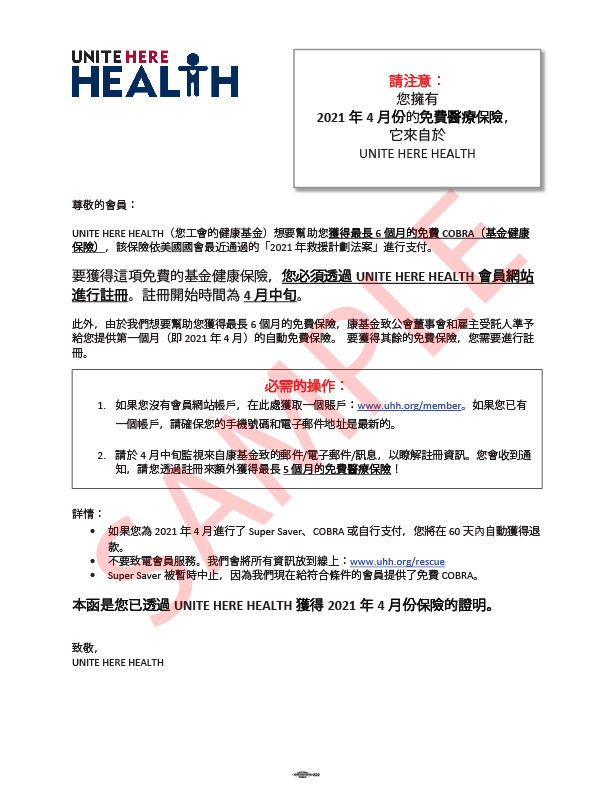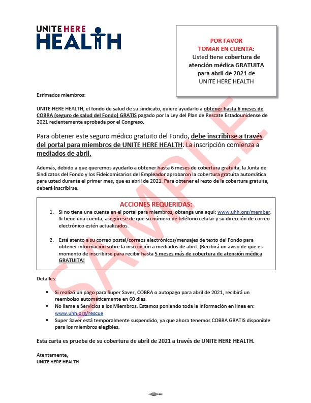 Please adhere to all legal and compliance requirements regarding this communications. The sample language provided here by UNITE HERE HEALTH does not include the legal requirements or guidelines to perform robocalls, email blasts or text messages. Thank you.
